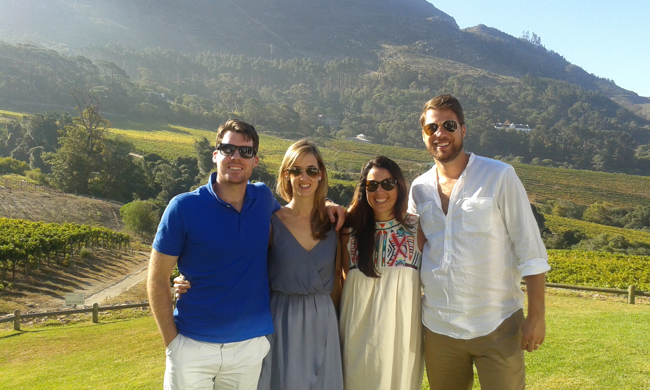 Yesterday, we headed to Constantia, which is about a half hour from city center. We took an Uber ($15 USD!!) to a gorgeous winery called Constantia Glen to meet up with our friends, Karen and Ronan. They are both from Cape Town and have been nice enough to show us the best places around town. As a side note, they were married on the exact same day we were!