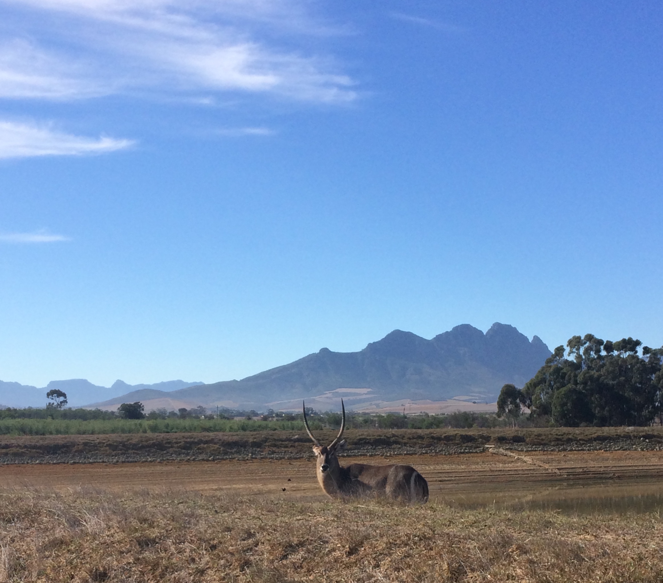 For example, yesterday, instead of my usual grind, I met up with Tina and Aleta (two fabulous expats who have taken me in) at 9 AM and we took the quick 40-minute drive to Stellenbosch for a game drive. We started with a little toast of bubbly and then jumped in our jeeps to see the game. I didn’t know what to expect because my experience with game reserves close to cities has not been great. The reserve we visited a few years ago outside of Nairobi was a pretty sad affair; more like a zoo than safari. This was not that.